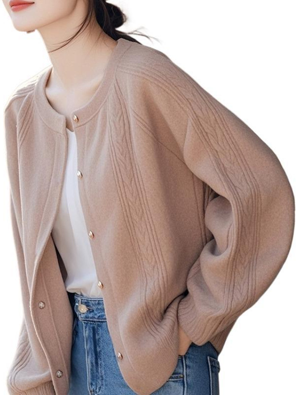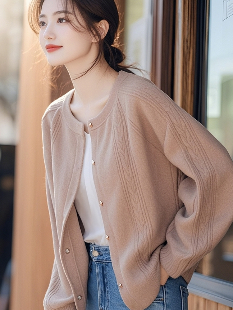 Super Good Design Knitted Coat Women's New Autumn 2025 Loose Low-Round Collar With Short Cardigan Top HZ1208