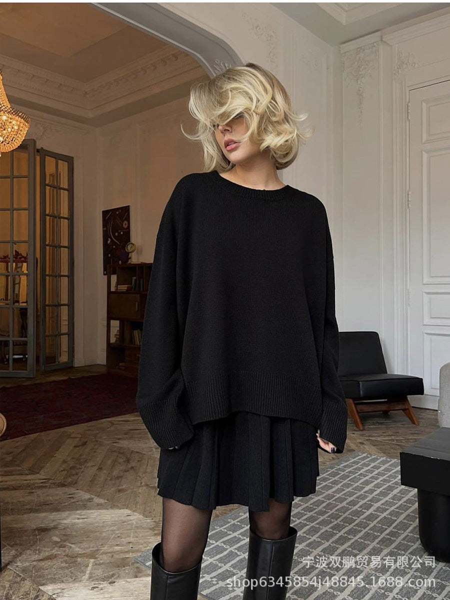 Hot Sale Of Pure Color Round-Neck Sweater Plus 100-Fold Skirt Suit Woman 2025 New Knitted Short Skirt Set HZ1208