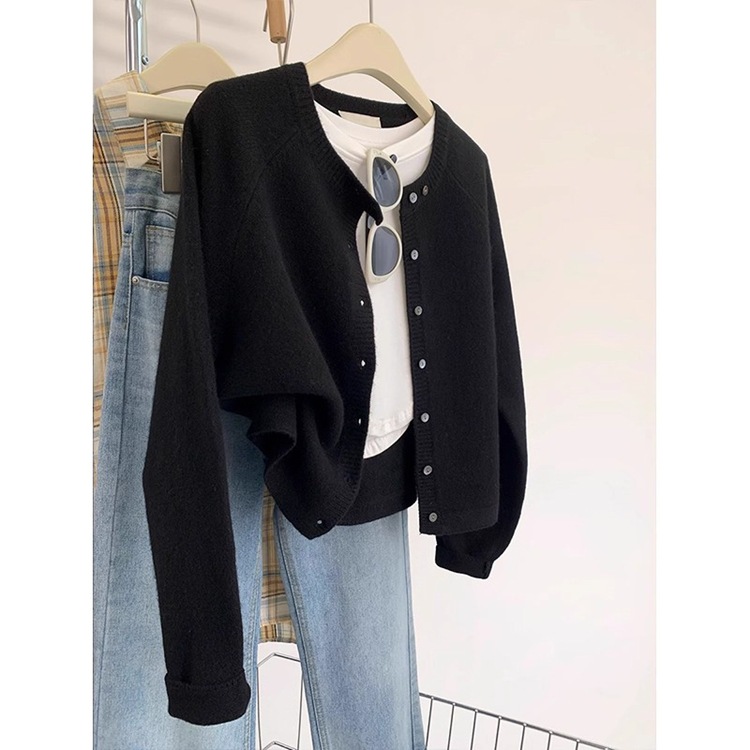 Soft Glutinous Solid Color Simple Short Design Knitted Cardigan Women 2025 Autumn And Winter Small Man Top Sweater Jacket HZ1208