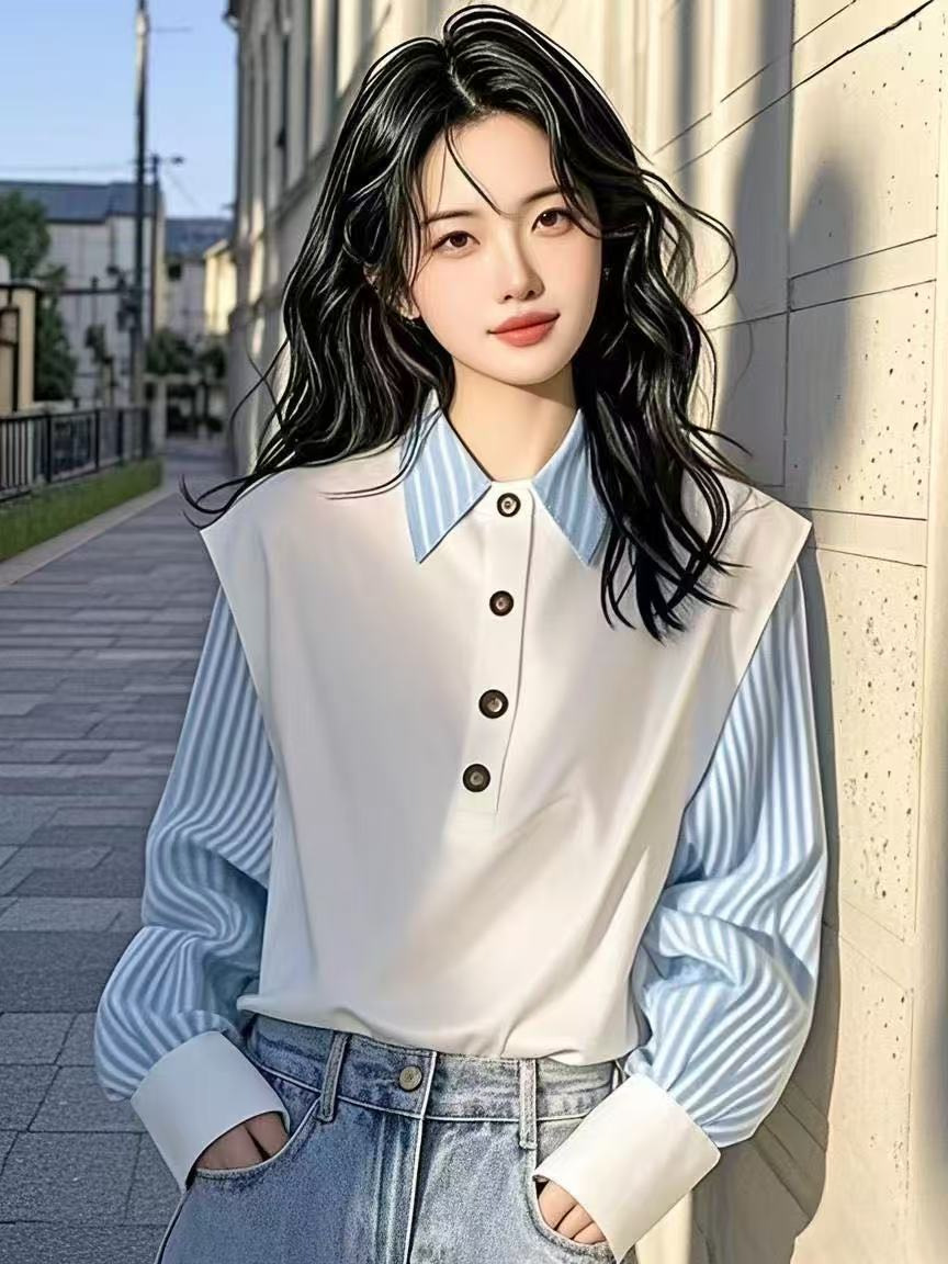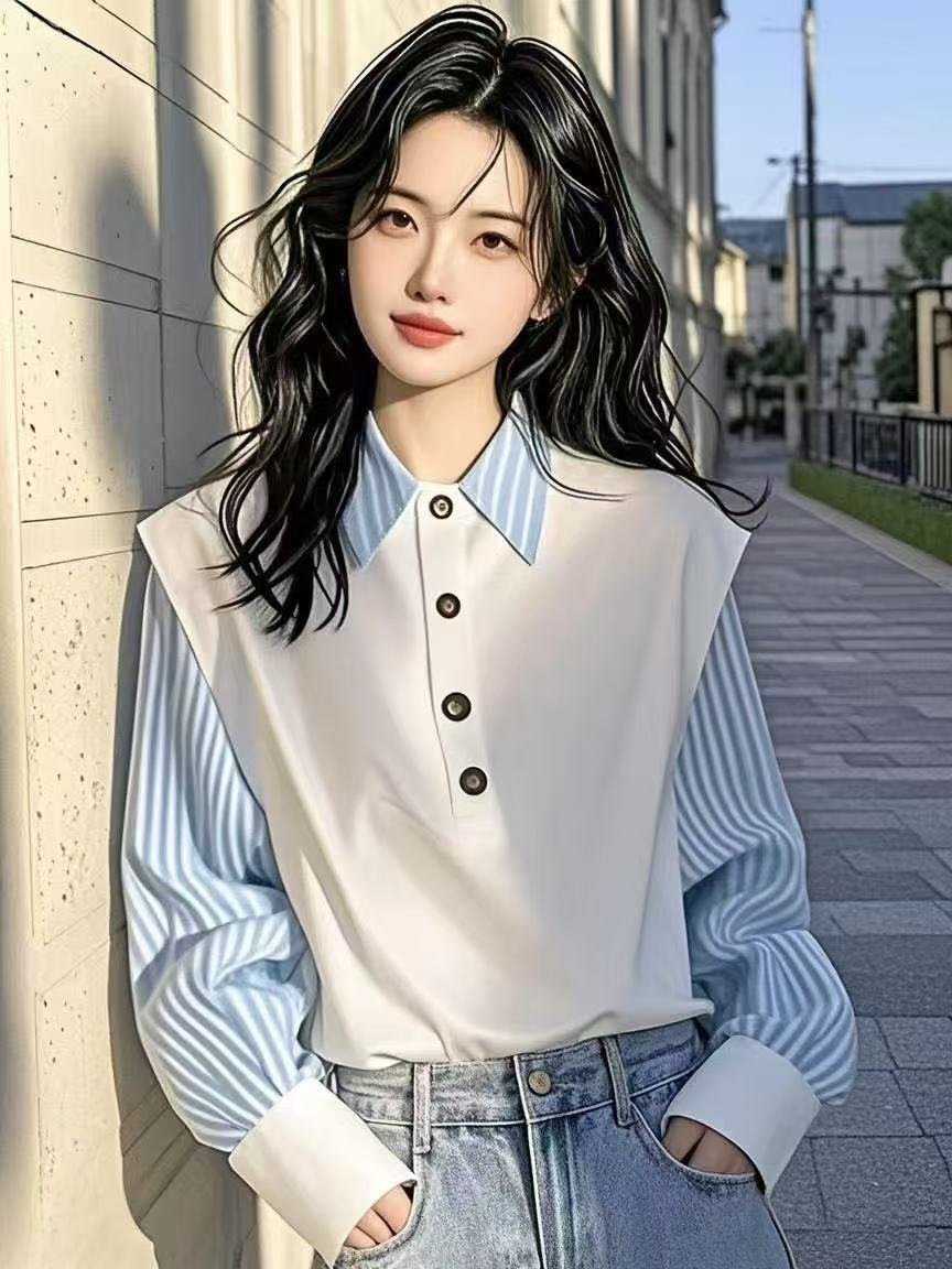 This Year's Popular Explosion Super-Look Unique Beautiful Ocean Design Fake Two Blue Stripes Spliced Polo Shirt HZ1208